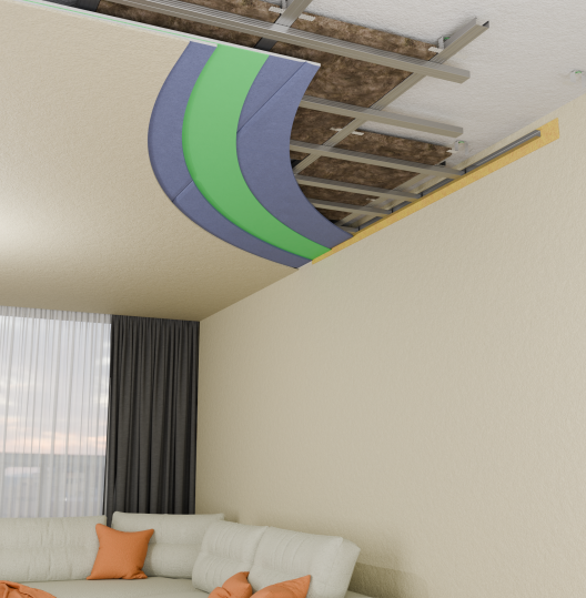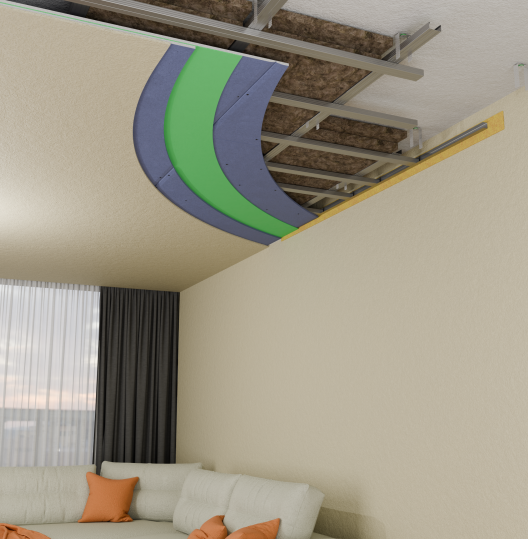 Когда применять: Когда нужна высокая эффективность при ограниченной высоте. Если сверху топают дети, падают предметы, громкая музыка, шум от разговоров, телевизора или лающей собаки.